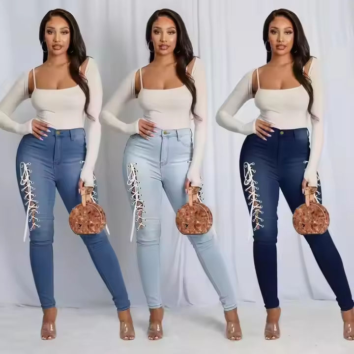 Jeans push-up taille haute pour femmes Pantalon crayon en denim respirant-Tout style solide Techniques de lavage formelles simples pour l'été
