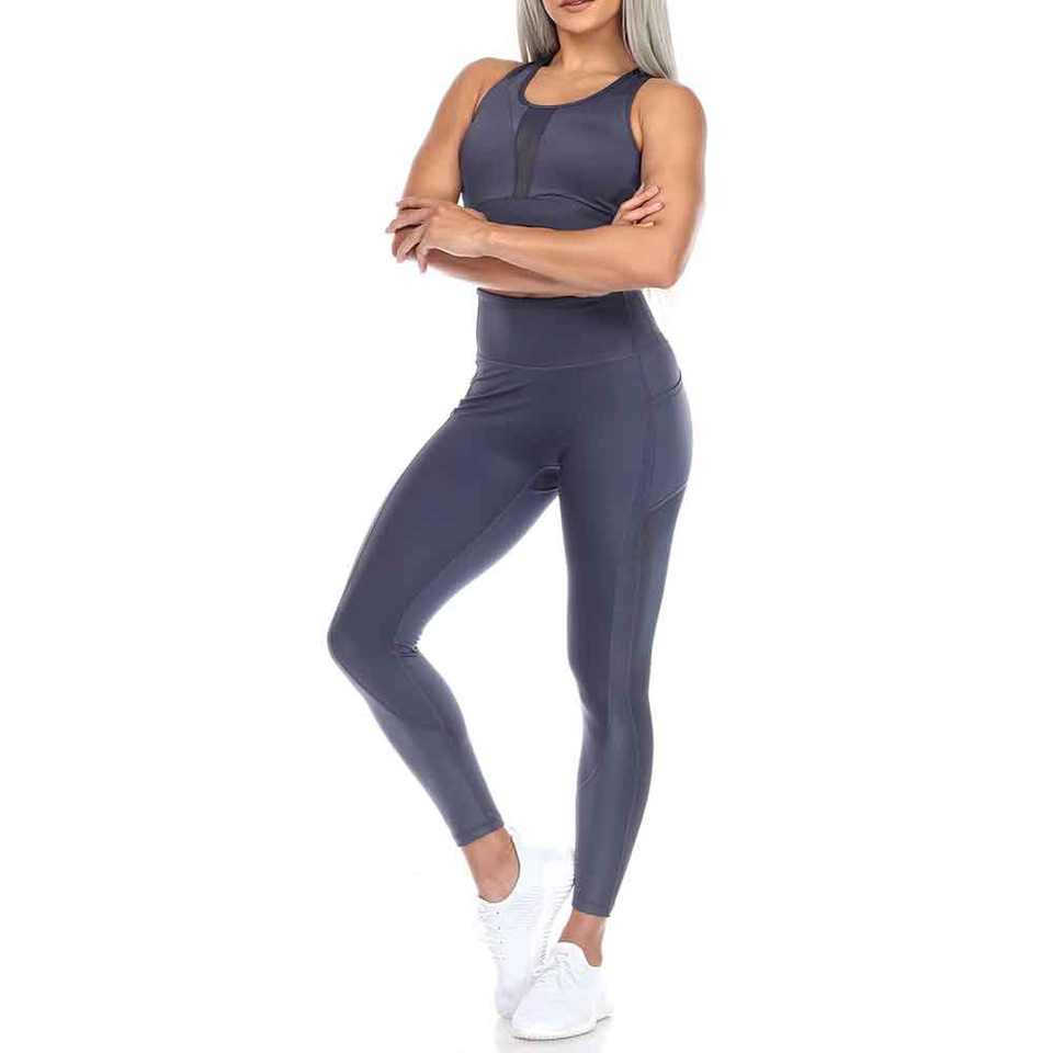 Leggings d'entraînement de compression du ventre à haute élasticité pour femmes avec soutien-gorge de Yoga push-up respirant équipement de sport de Fitness solide