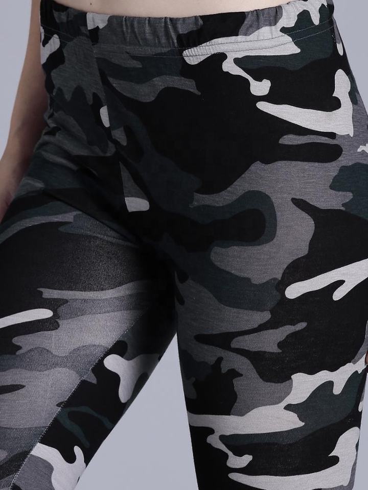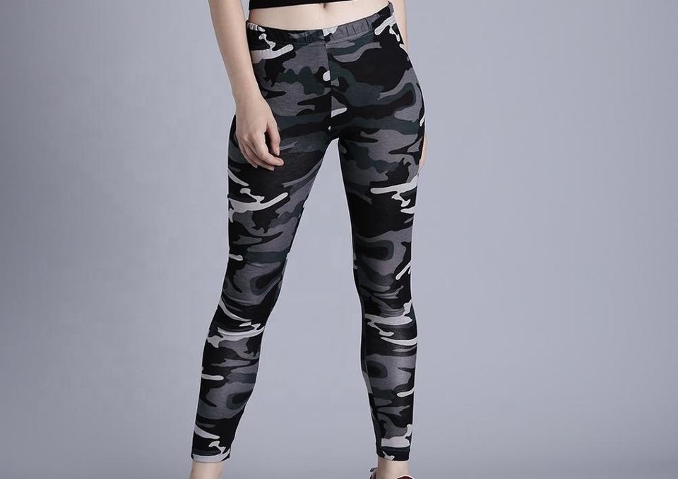 Leggings en nylon Spandex léger taille haute pour femmes imprimé camouflage à motifs pour le logo en tissu tricoté sans couture de yoga et de gymnastique