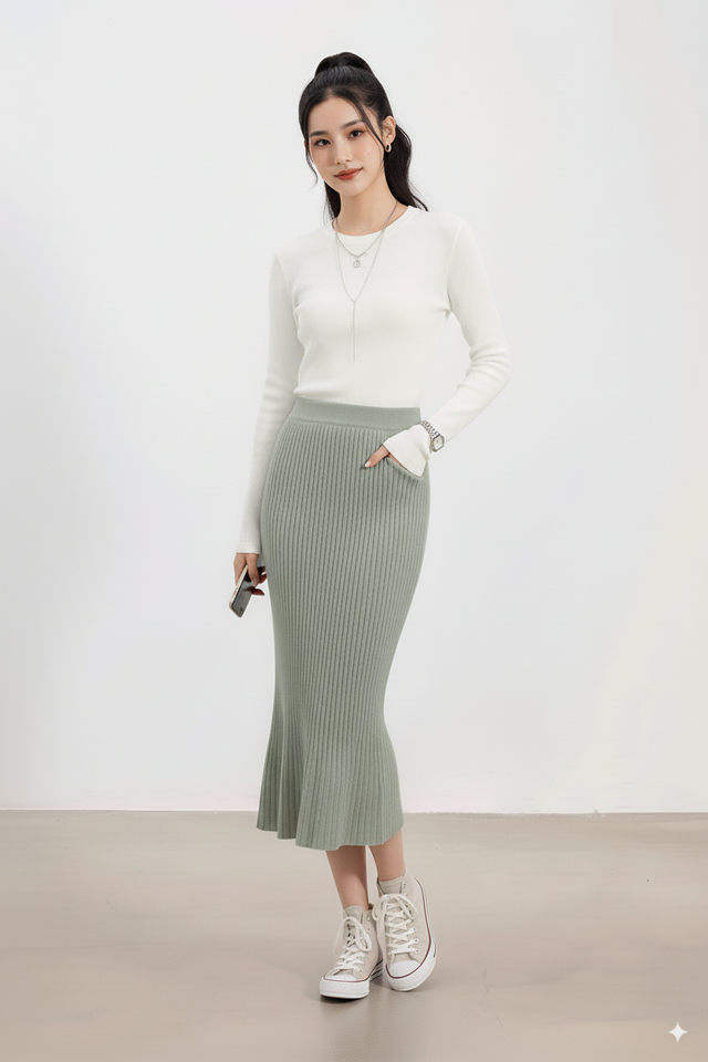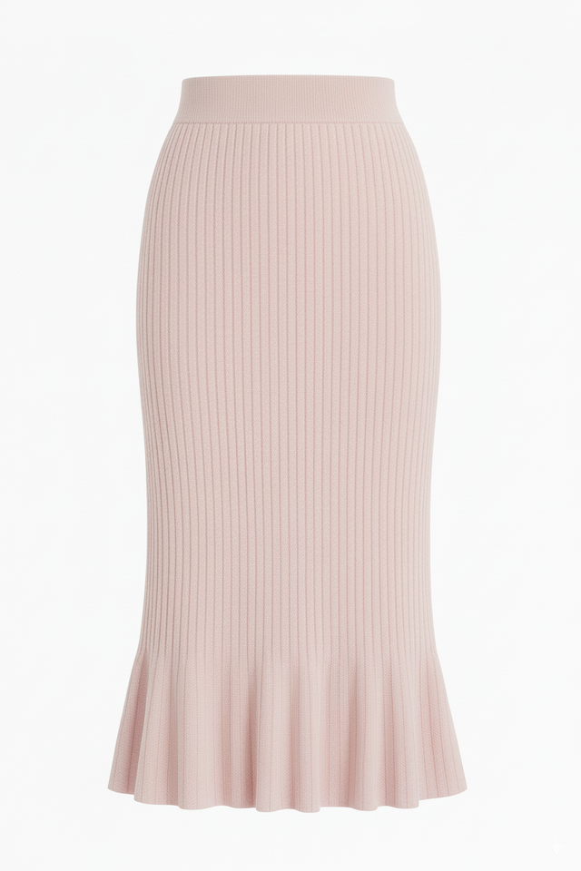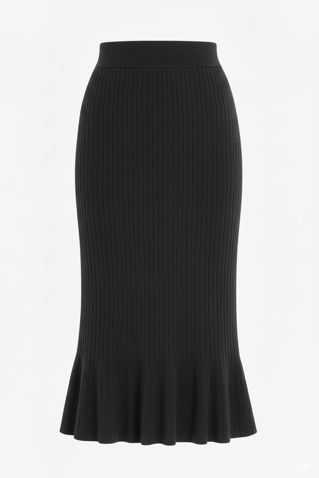 Jupe midi décontractée pour femme, taille haute, en tricot côtelé de laine, infroissable, écologique, coupe ajustée, douce et extensible, pour le bureau, avec étiquette personnalisée