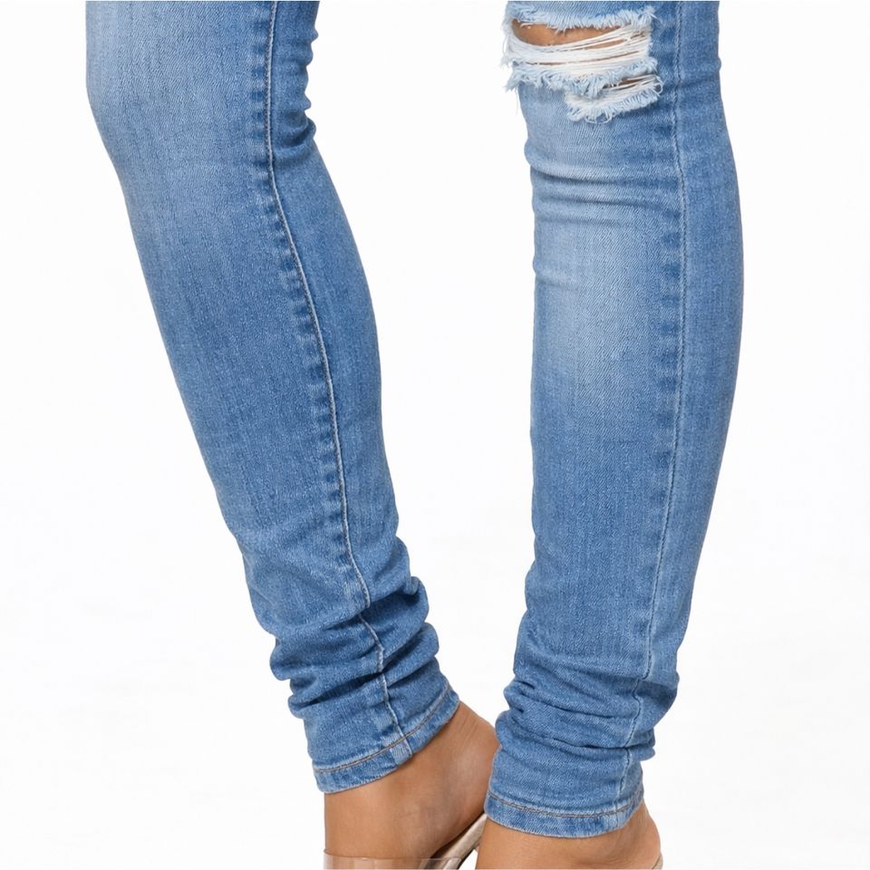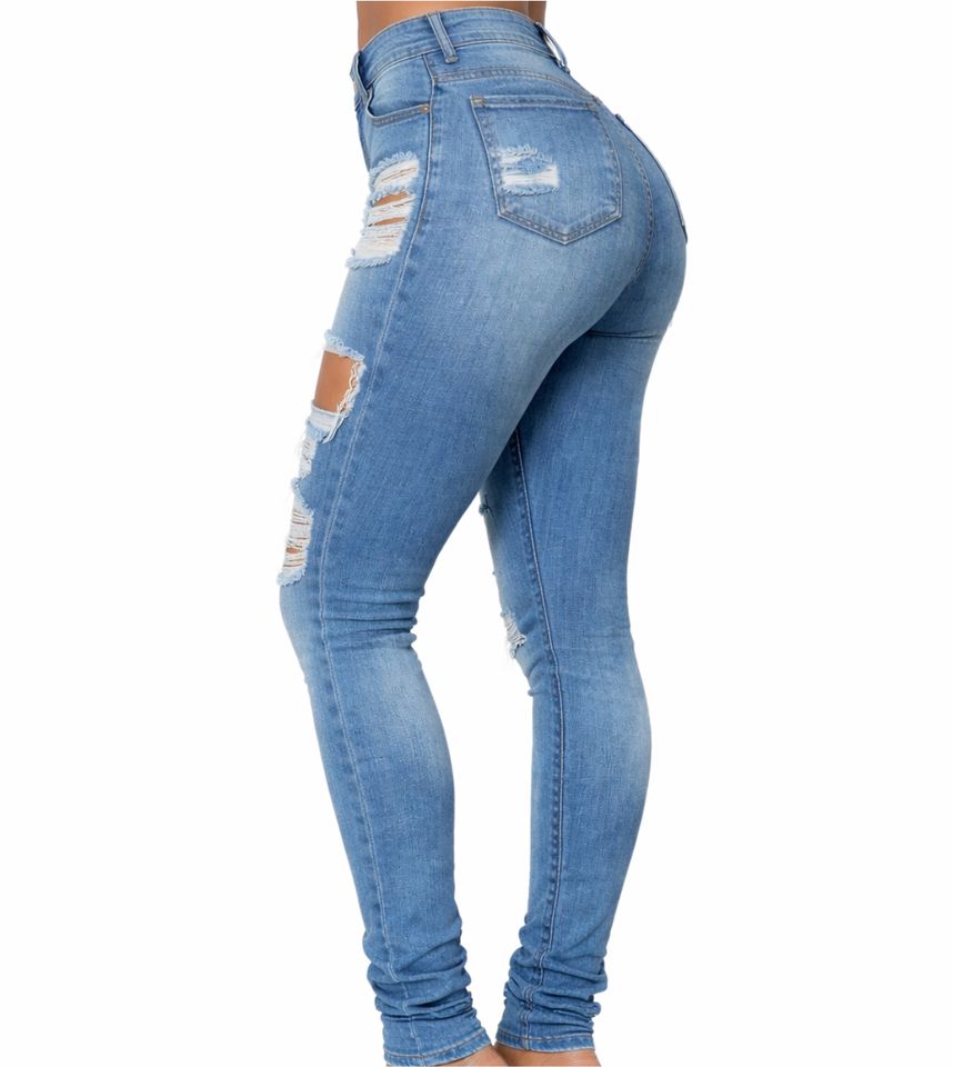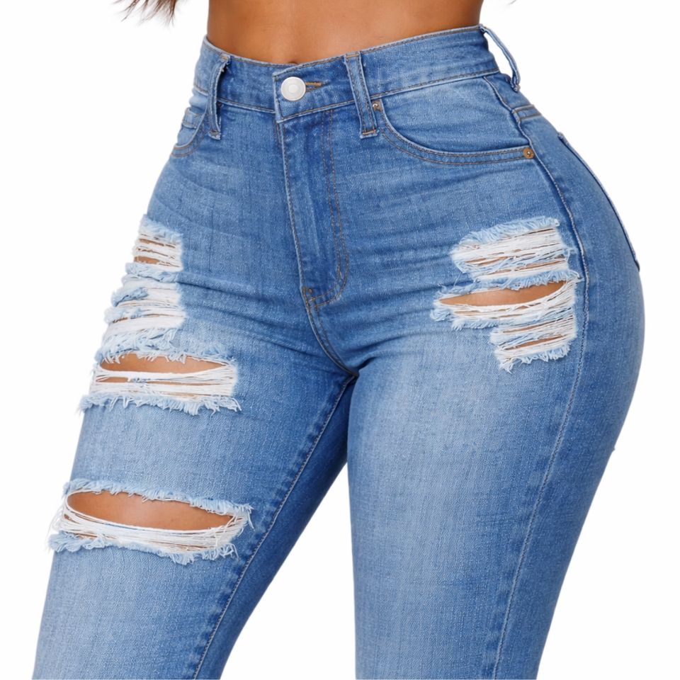 Jeans en denim skinny déchirés à taille haute pour femmes - Tissu extensible respirant et écologique - Style vintage - Look décontracté tendance pour l'été