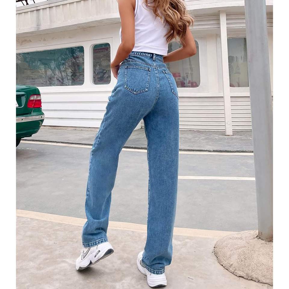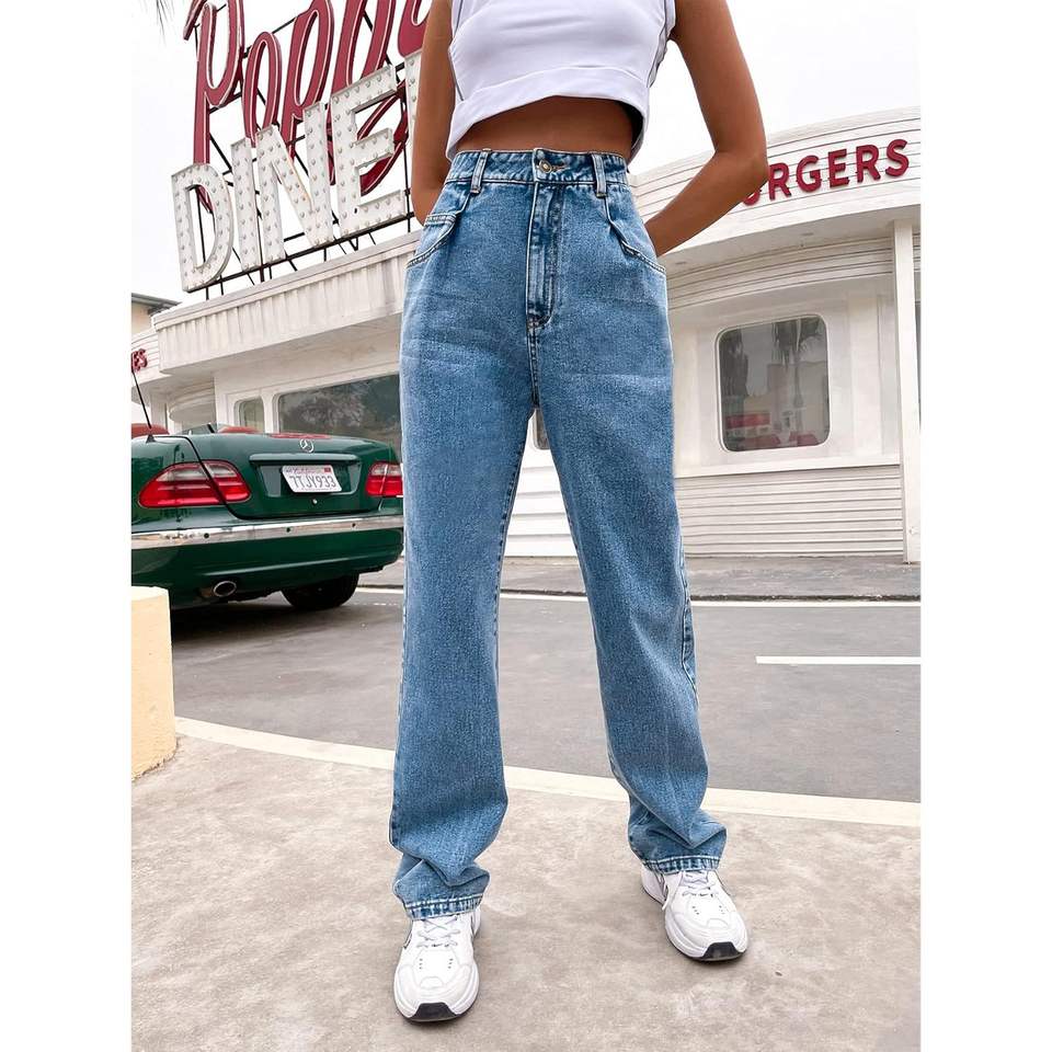 Women's High Waisted Vintage Baggy Denim Pants 90's Boyfriend Jeans Straight Leg Breathable Big Size for Teen Girls