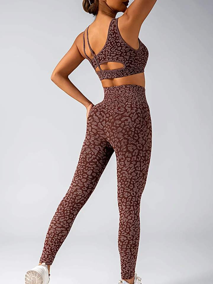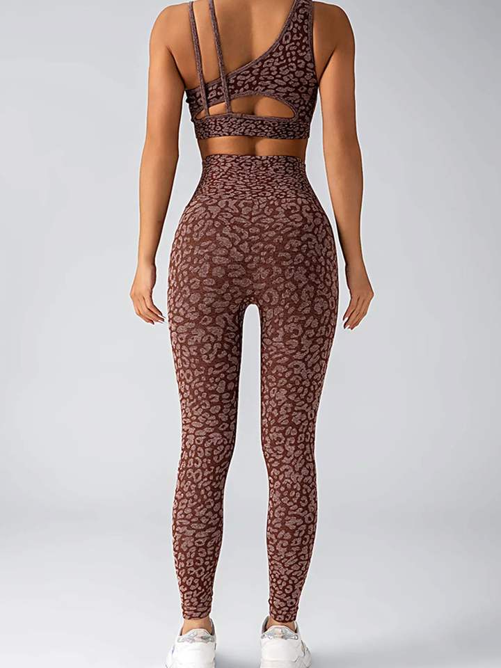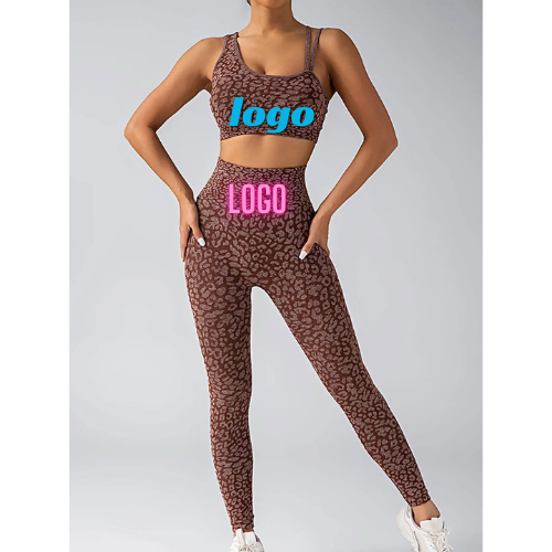 Ensemble de yoga taille haute pour femme avec motif solide imprimé léopard et fermeture à la taille élastique pour le fitness et un usage quotidien