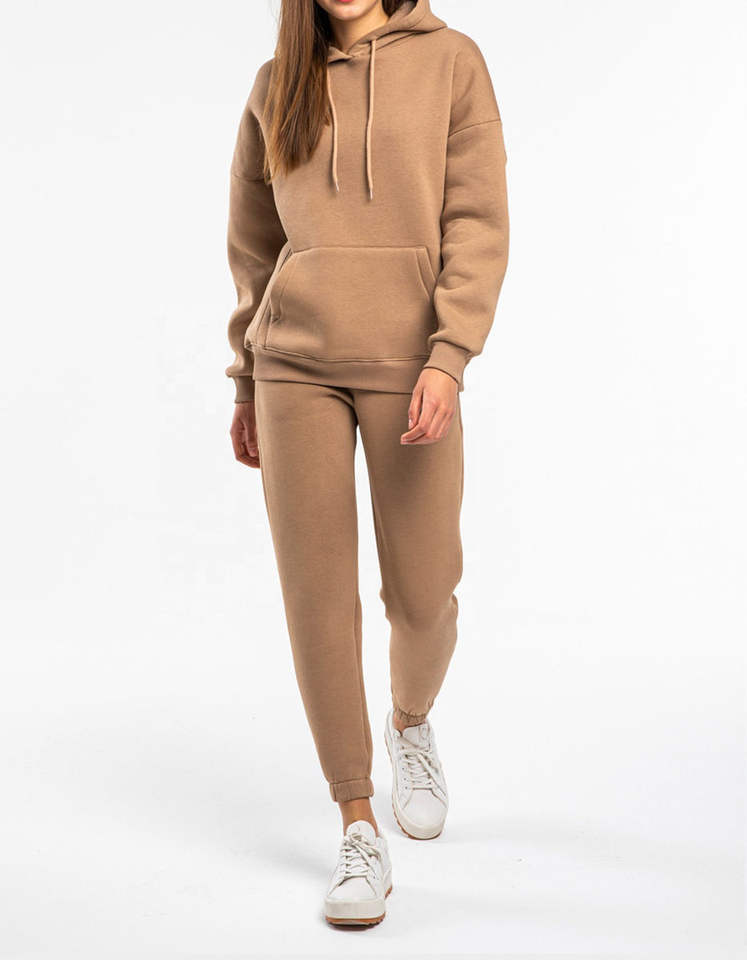 Women's Hooded Casual Sweat Suit Pullover Jogger Tracksuit 2 Piece Set 100% Cotton Fleece
