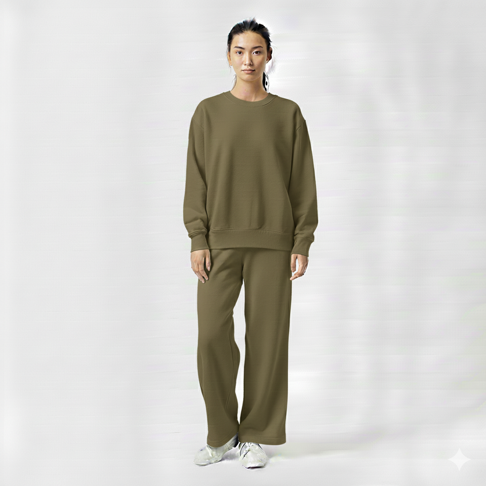 Women's Hooded Full-Length Sweatshirt Wide-Leg Sweatpants Set 100% Organic Cotton Casual Winter Loungewear Regular Fi
