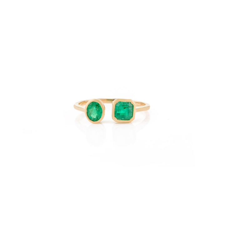 Vente chaude pour femmes bague ouverte en or massif octogone ovale coupe émeraude deux pierres dernière conception pour les fêtes prix de gros bijoux