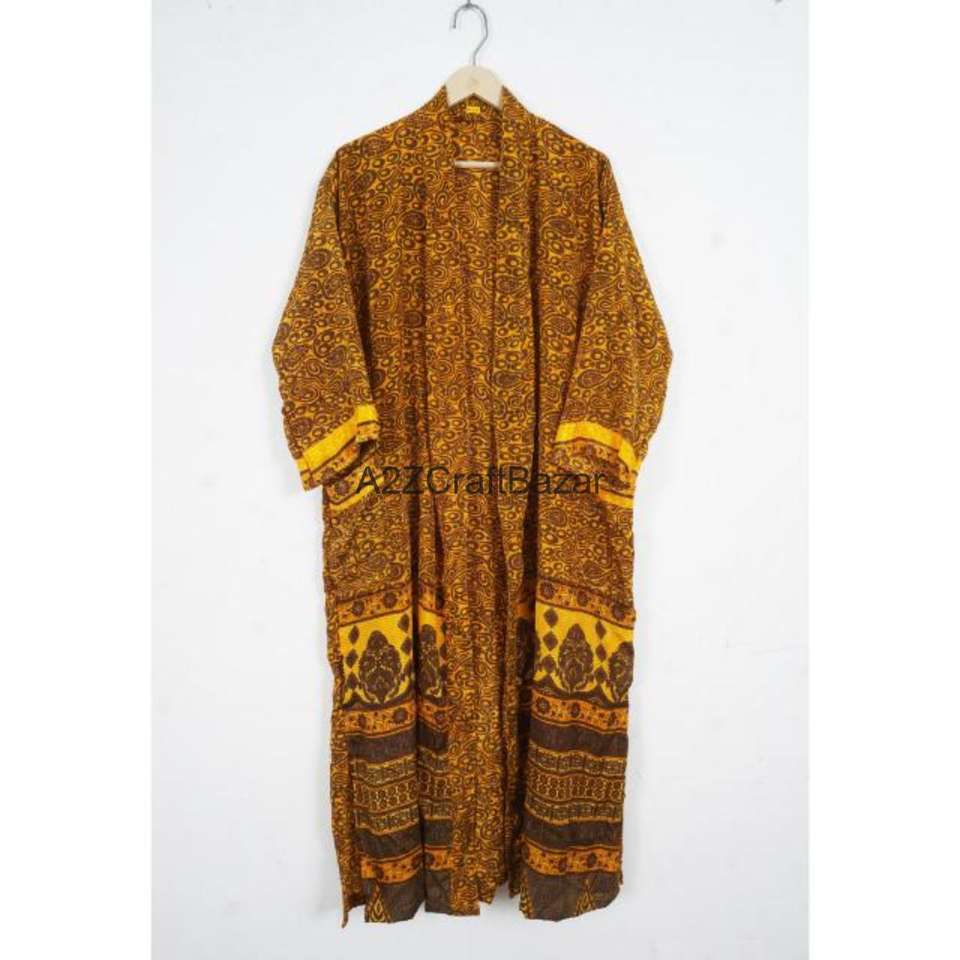 Kimono japonais pour femmes en soie indienne, patchwork, col en V, fermeture à cordon, longueur intégrale, manches trois-quarts, 100% soie douce