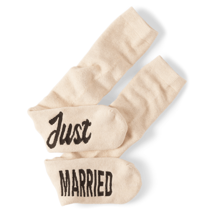 'Just Married' graphic design at bottom,Cushioned archFeatures