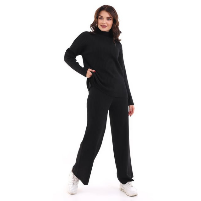 Women s Knitwear Two-Piece Tracksuit Set High Quality Plain Turtleneck Oversized Sweater and Trouser Set Soft Textured Knitwear
