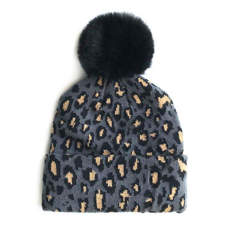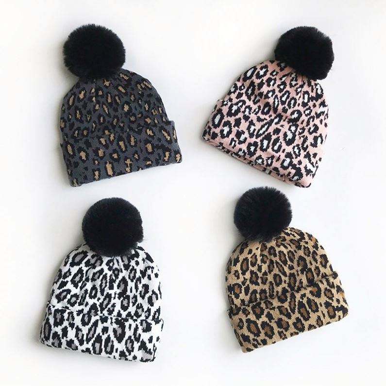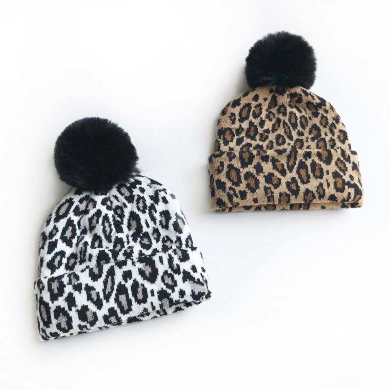 Bonnet en tricot épais à motif léopard et design bulles pour femme, idéal pour l'hiver, les activités extérieures, les voyages, convient aussi aux enfants.