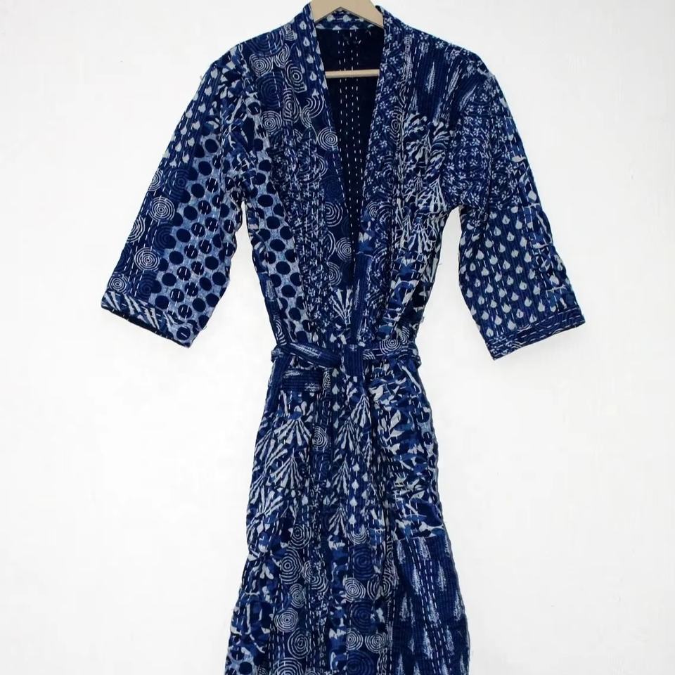 Manteau de bain en mousseline de soie léger pour femmes Manteau Kantha à imprimé floral pour l'automne pour l'été et le printemps Vêtements de nuit Robe Veste