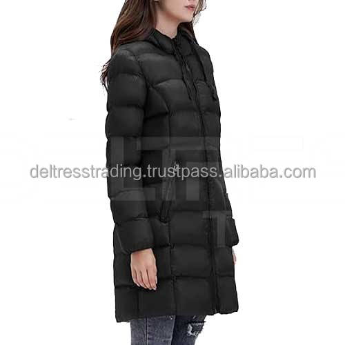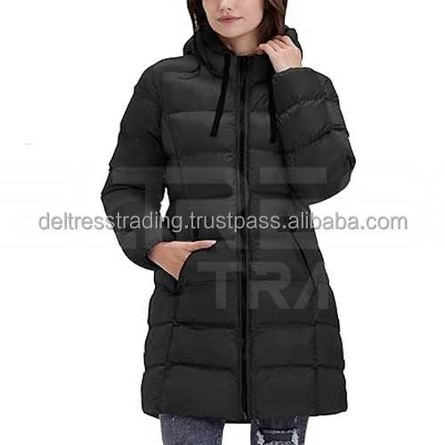Manteau bouffant long léger mi-long pour femmes Capuche Tissu de laine respirant Doublure en nylon Méthode de tissage tissé Prix de gros