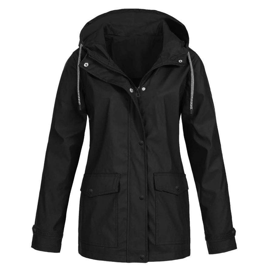 Femmes léger RTS automne hiver veste couleur unie à capuche coupe-vent poches toile imperméable coupe-vent pour une utilisation en extérieur