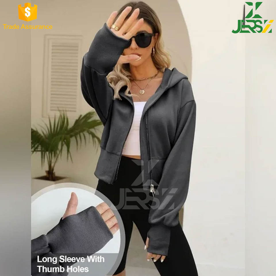 Product name:Womens Zip Up Crop Hoodie