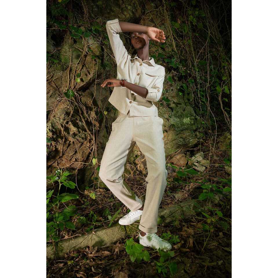Ensemble pantalon double jambe en lin pour femme avec haut à manches longues et épaulettes tombantes