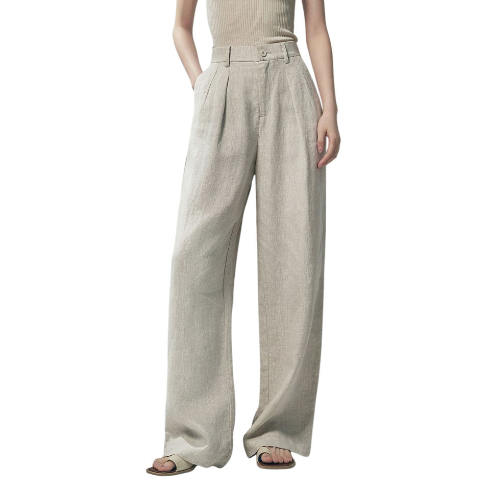 Pantalon pantalon à cordon en lin pour femme avec motif à rayures et poches