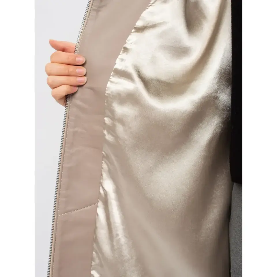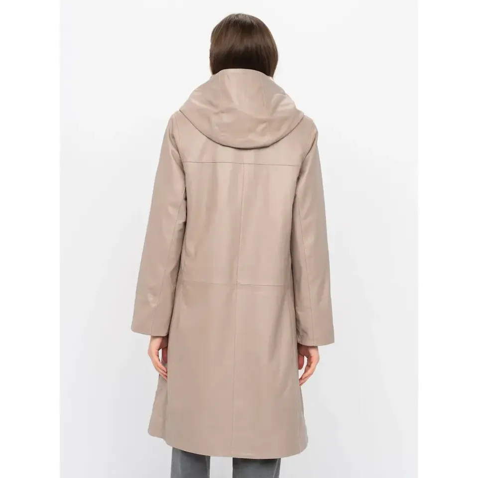Women's Long Beige Lambskin Hooded Leather Coat Handcrafted Istanbul - Minimalist Style Clean Zip-Up Finish Customizable Size