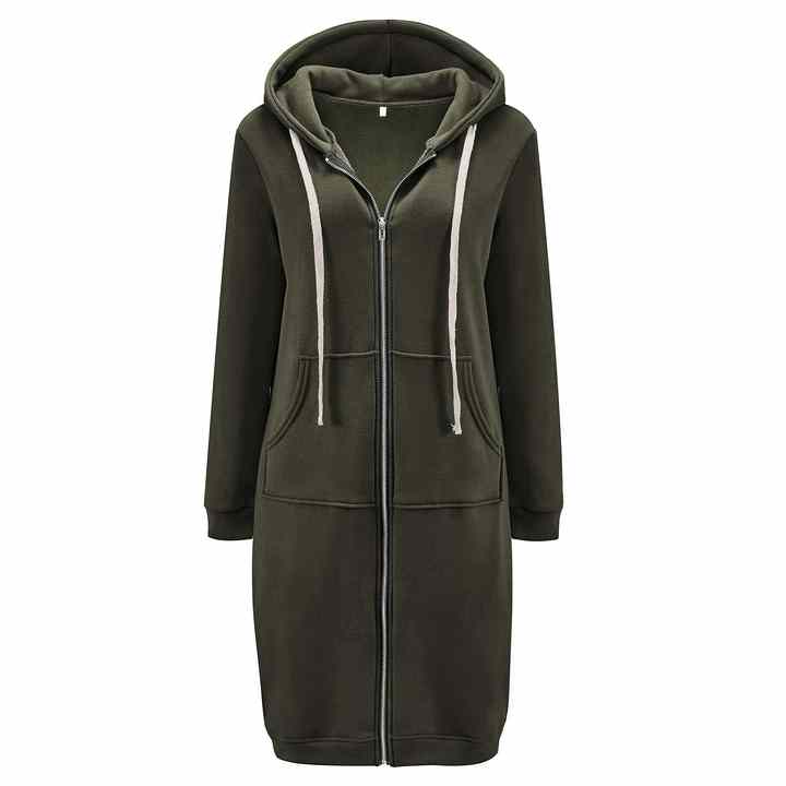 Women's Long Hoodie Tunic Winter Fleece Jacket Knit Casual Sweatshirt Zip Hoodie 3D Embroidery 100% Cotton Custom Sweatshirt