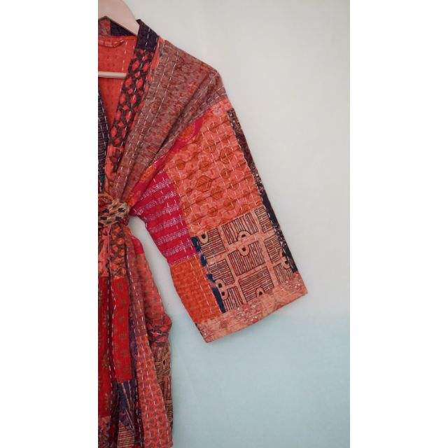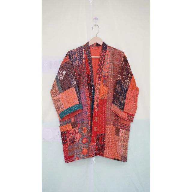 Veste d'hiver pour femme, longue, multicolores, patchwork floral, matelassée, 100% coton Kantha, manches longues