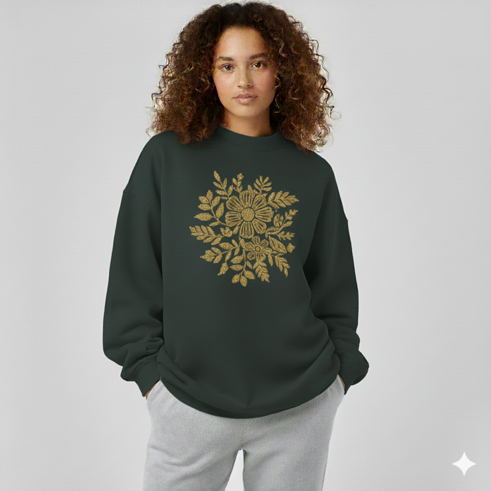 Women's Long Printed Mockneck Sweatshirt Front Logo-Eco-Friendly Casual Winter Oversized Pullover for Cozy Modern Streetwear
