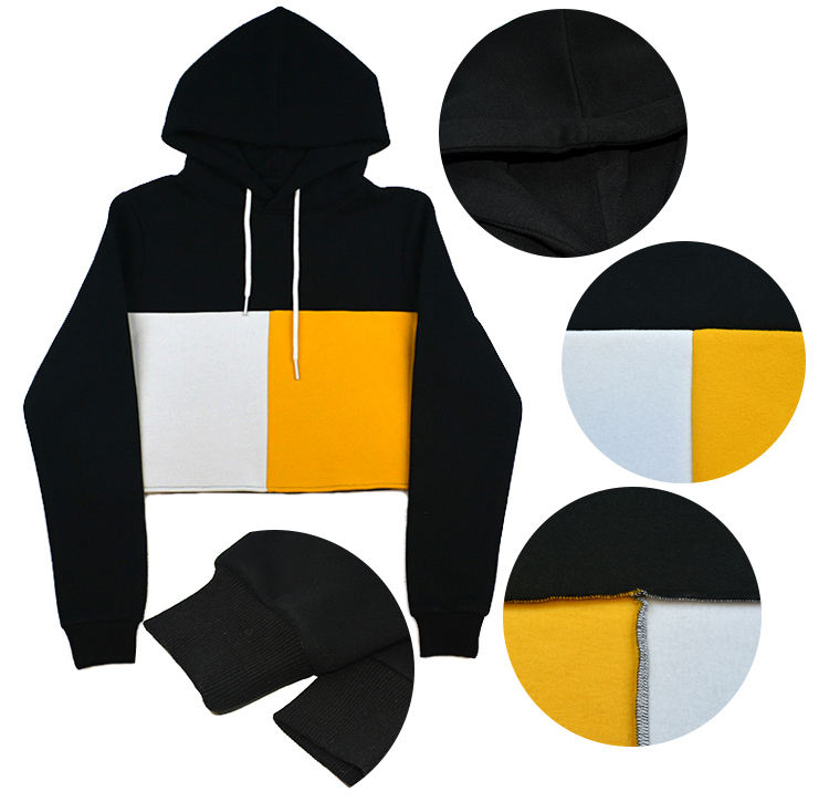 Sweat à capuche épissé à manches longues pour femmes, brodé lavé avec décoration de trou, sweats pas chers en gros