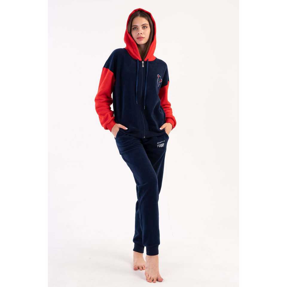 Ensemble de pyjama en polaire à manches longues pour femme, avec capuche, fermeture éclair, poches et poignets
