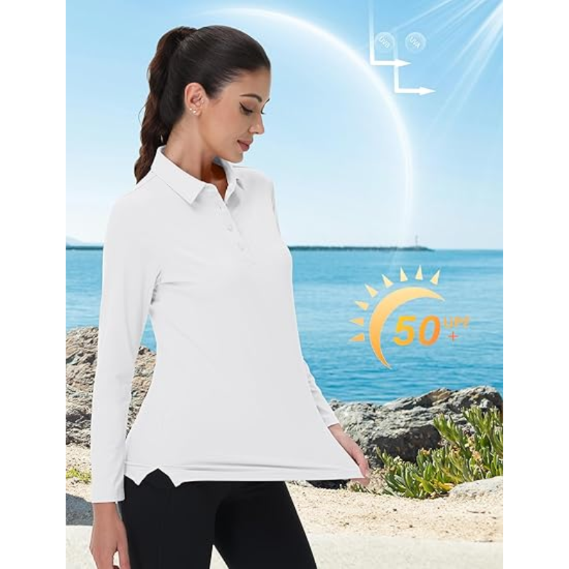 Women's Long Sleeve Polo Shirt Golf T-Shirt Quick Dry UPF 50+ Sun Protection Lightweight Athletic Tennis Shirt OEM ODM All Sizes
