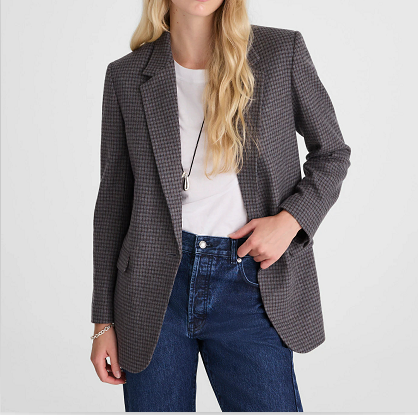 Blazer ample à motif pied-de-poule pour femme – Veste de costume décontractée à un bouton pour le bureau, vêtement d'extérieur élégant à carreaux pour le printemps et l'automne