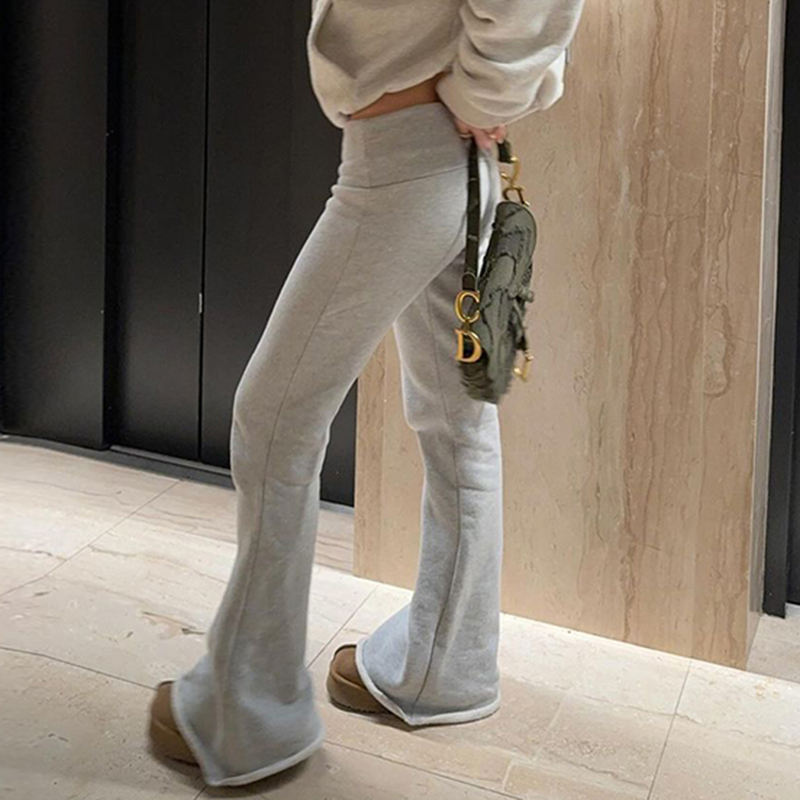 Pantalons évasés taille basse pour femmes Pantalons de détente en molleton léger Pantalons de détente de couleur unie pour femmes