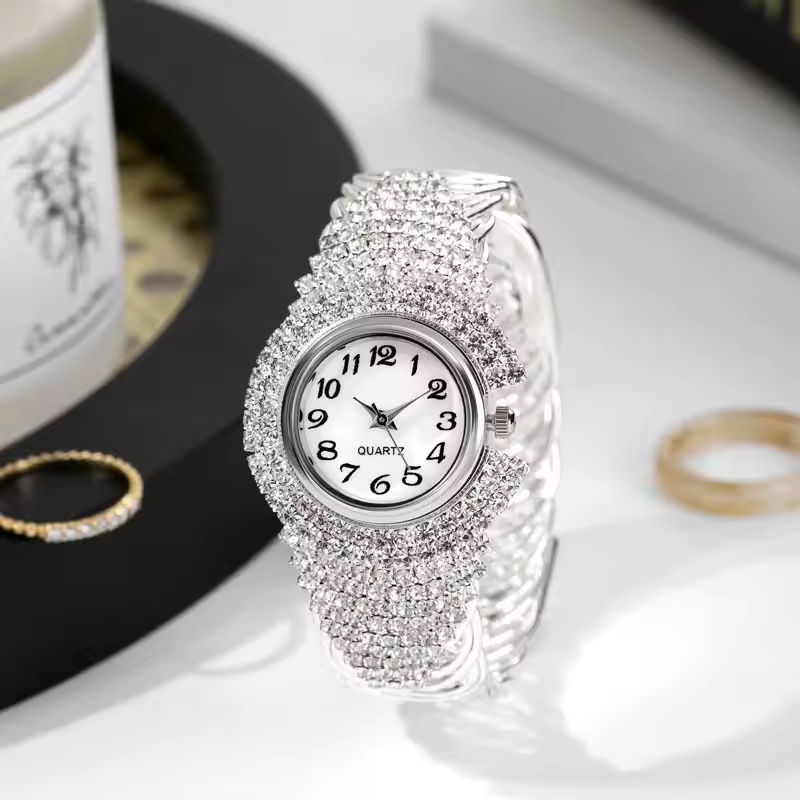 Women's Luxury Bracelet Watch Gold-tone Bracelet Quartz Watch with Diamonds