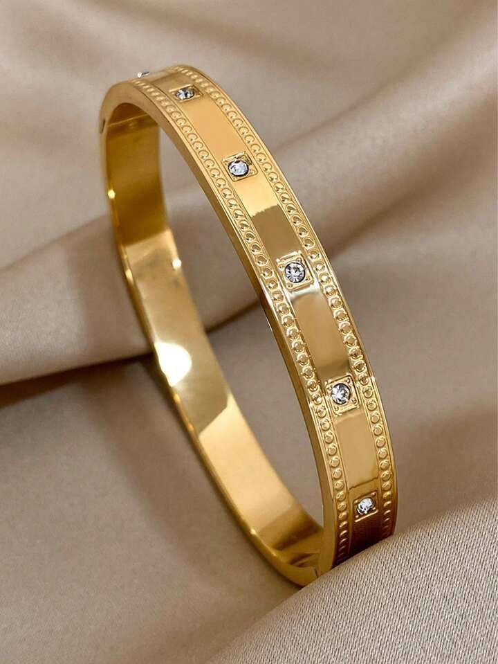 Women's Luxury Gold Plated Wedding Bracelet Exquisite Lucky Pattern Fashion Bangles for Bride Big Bangles Jewelry