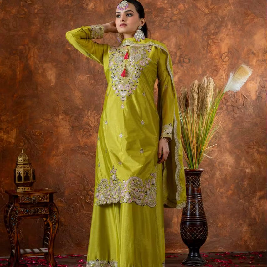 PLAZZO WORK:With Embroidery 3 mm Sequence & Coding Dori Work With Elastic