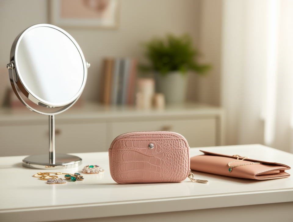 Porte-monnaie pour femme en cuir synthétique mat à motif crocodile, mini format, fermeture à bouton, avec dragonne