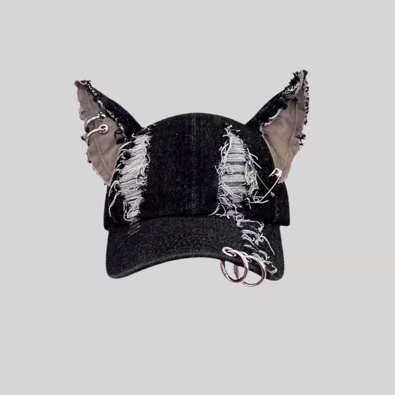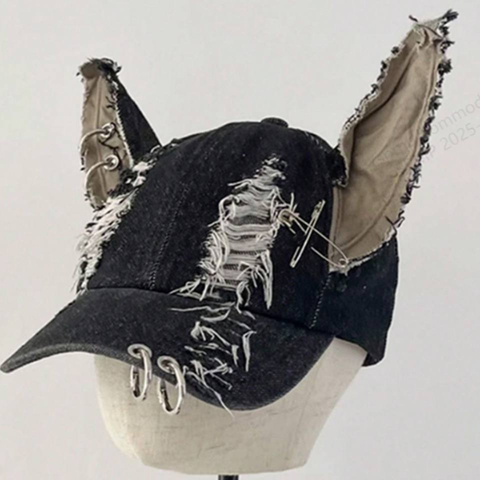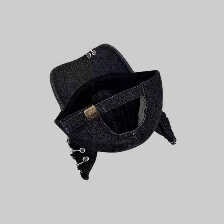 Casquette de Baseball en Denim déchiré Y2K pour hommes pour femmes 100% coton décontracté boucles d'oreille de rue anneaux en métal casquette à bec de canard polyvalente