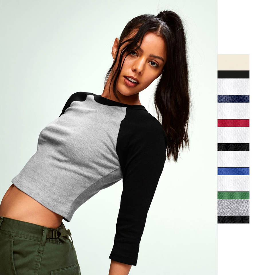 Femmes Micro côtes 3/4 manches raglan bébé t-shirt femmes lettre impression bébé T-shirt 2025 ajusté mode à manches courtes culture t-shirts