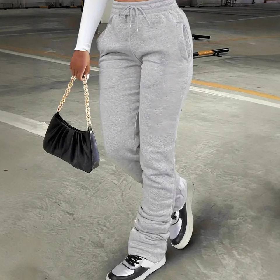 Pantalon de survêtement taille moyenne pour femmes cordon de serrage grande taille poche unie pantalon empilé décontracté Streetwear Sport bas tissu polaire