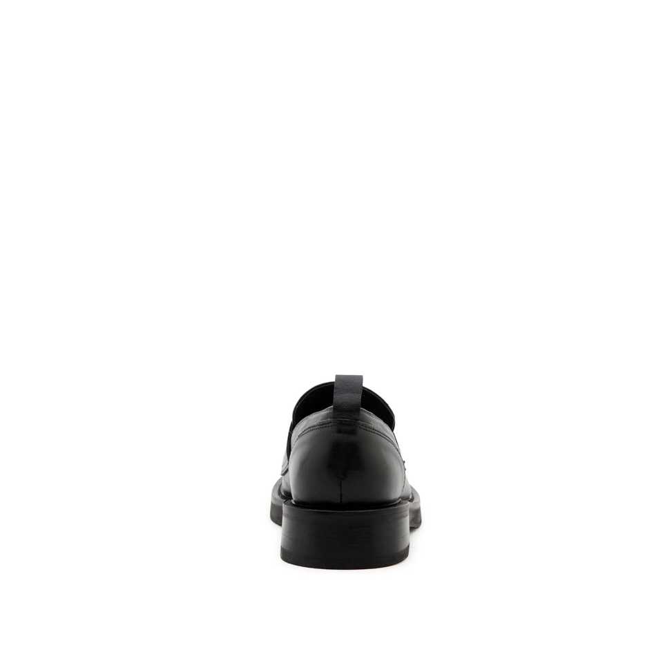 Women's Mocassino Flats Vitello Nero with V Logo Silver 2.5cm Heel Black Sizes 35-41 Made in Italy