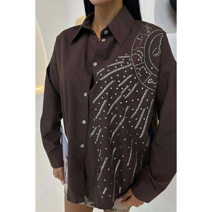 Chemise en popeline pour femme, motif lune, ornée de pierres, collection 3440