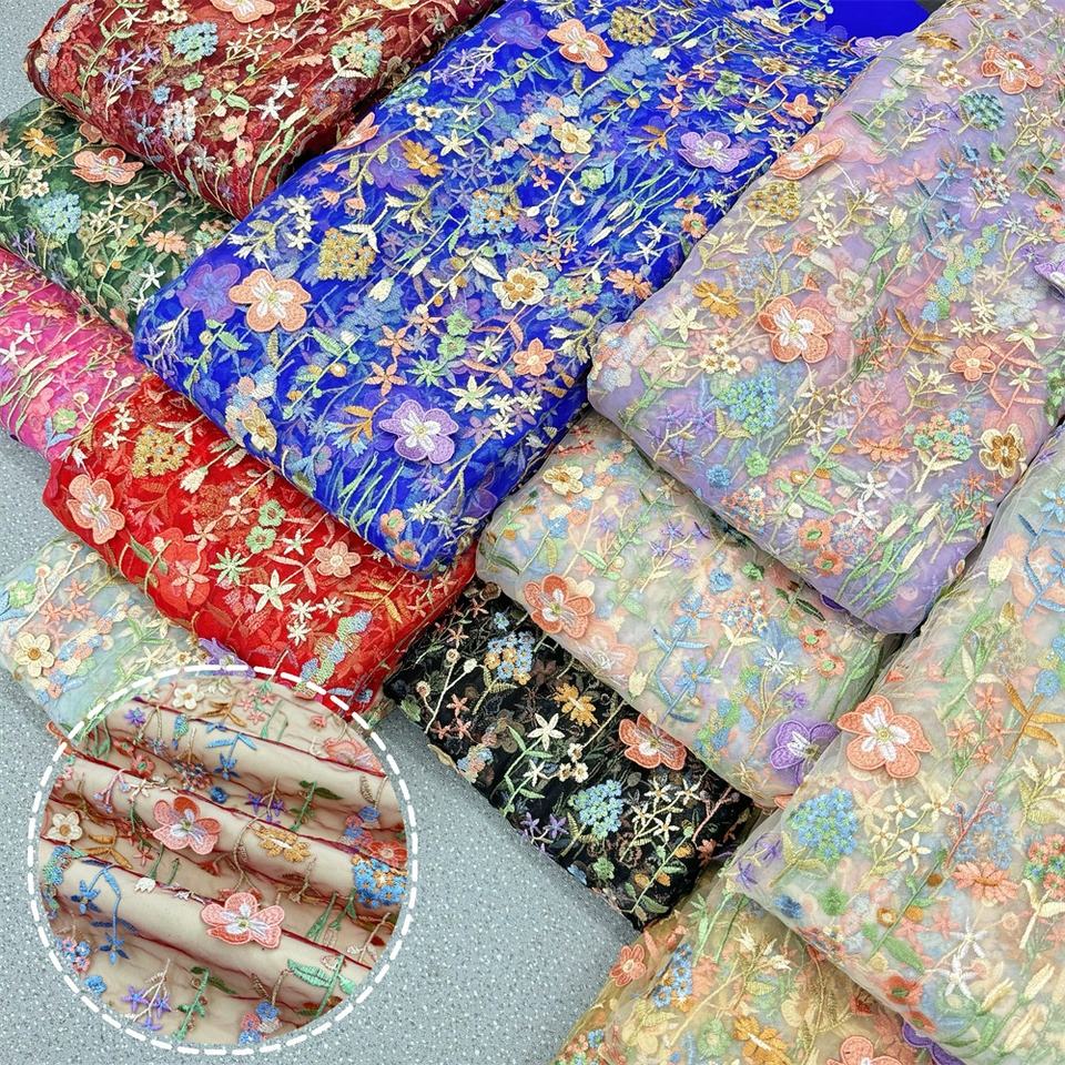 Femmes multicolore 3D maille broderie dentelle robes de mariée tissu de coton Style Jacquard tricoté Technique pour les vêtements des filles