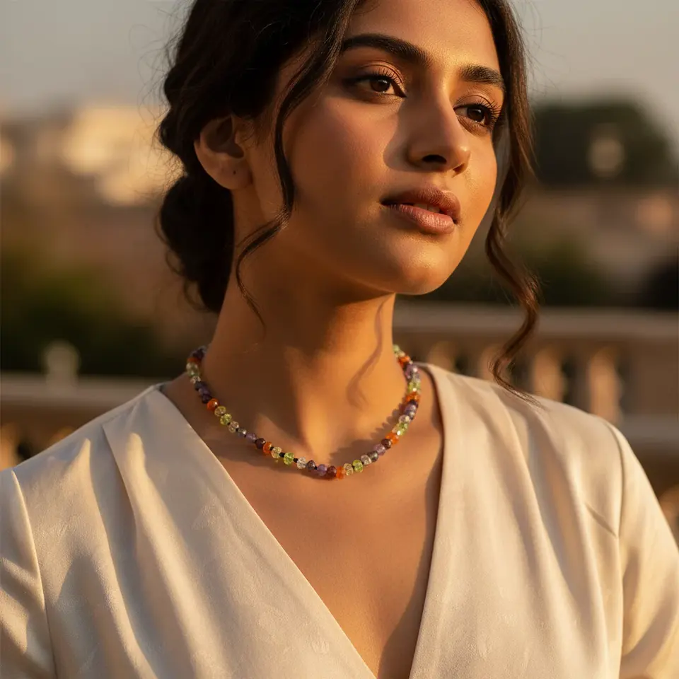 Women's Multi-Gemstone Bead Necklace Colorful Bohemian Vintage Religious Cute Jewelry Garnet Quartz Pearl Turquoise Jade Main