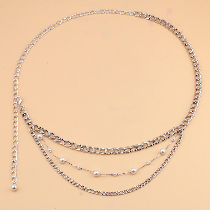 Chaîne de corps multicouche pour femme avec perles d'imitation, accessoire de taille décontracté et tendance