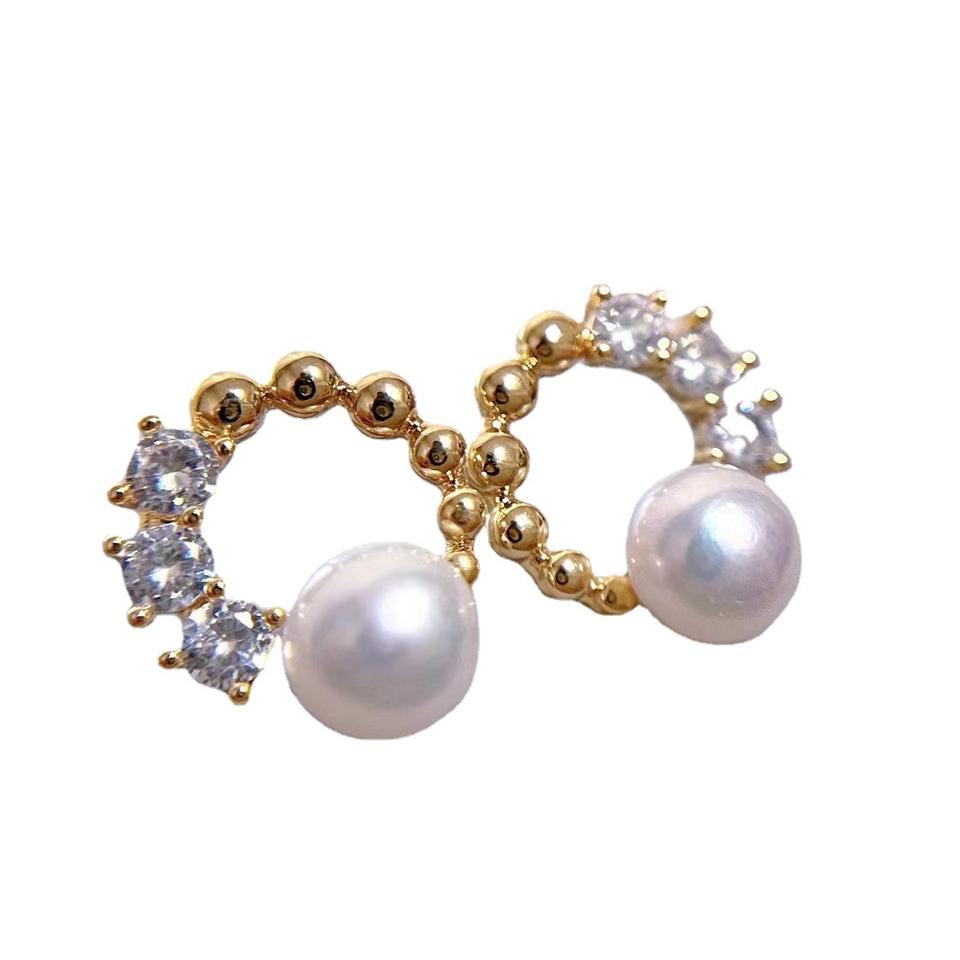 Women's Natural 11-12mm Freshwater Pearl Stud Earrings Round Strong Light Niche Design with S925 Silver