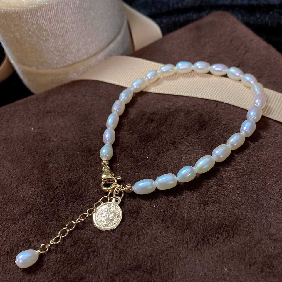Women's Natural Freshwater Pearl Bracelet with 14K Gold Finish Small Rice Grain 2mm-3mm Size Jewelry
