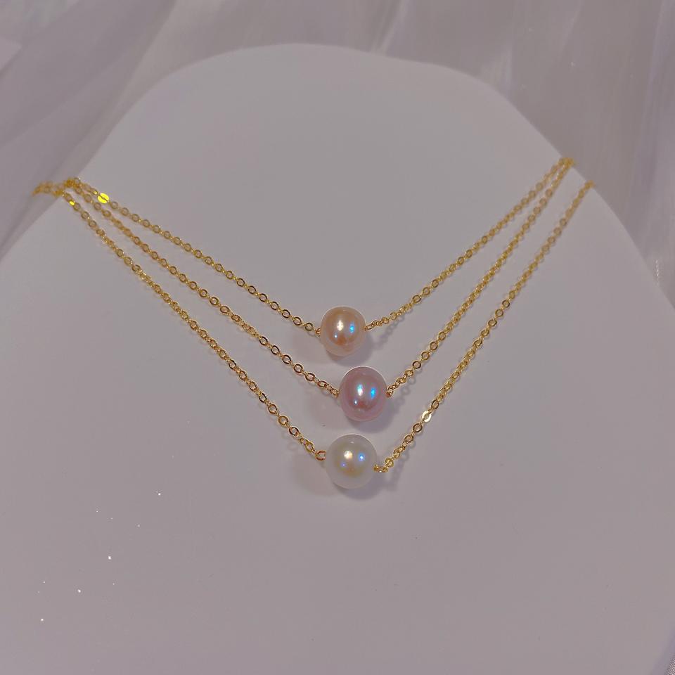 Women's Natural Freshwater Pearl Necklace Single Piece All-Body S925 Silver Plated 18K Gold Lock Bone Fashion Jewelry Set