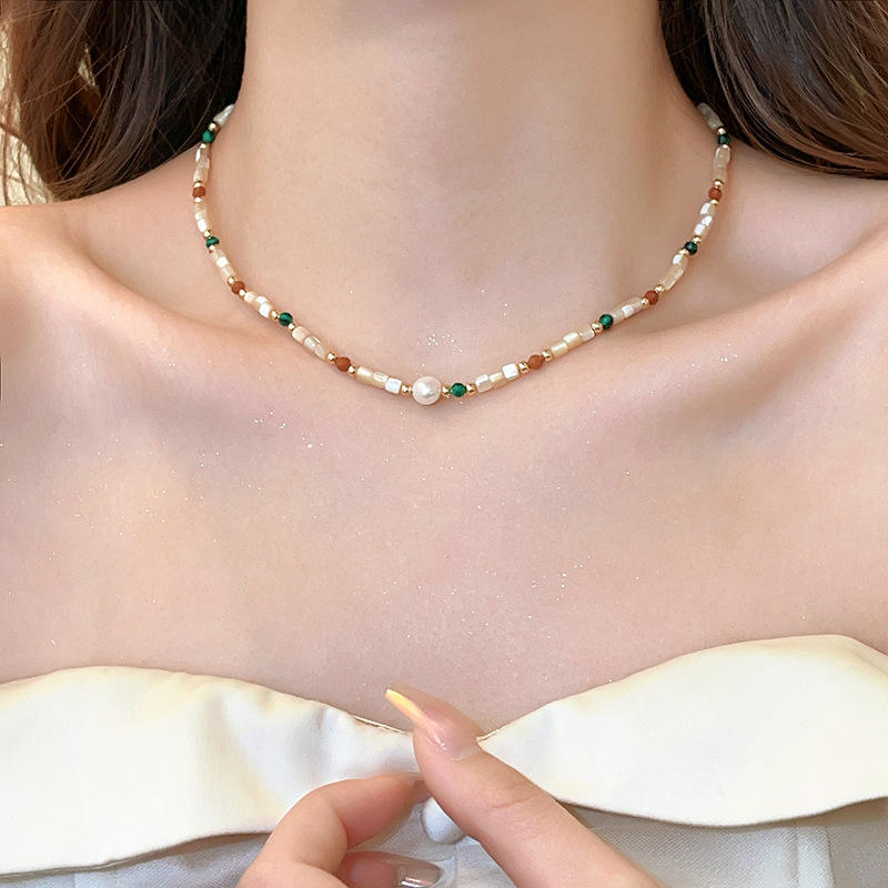 Women's Natural Stone Freshwater Pearl Necklace New Popular Light Luxury Collarbone Chain Dopamine Inspired