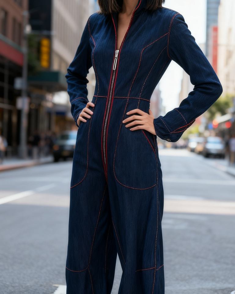 Combinaison décontractée pour femmes, nouvelle collection automne/hiver, coupe ajustée, col en V, grande taille, couleur unie, grande poche, tendance