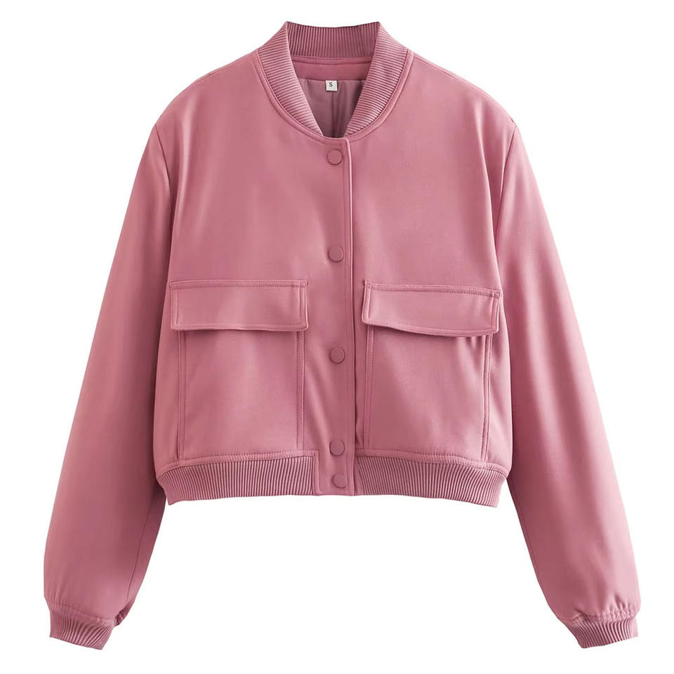 Femmes nouveauté printemps automne Baseball veste décontracté coupe-vent col montant grande poche bouton conception respirant soie court