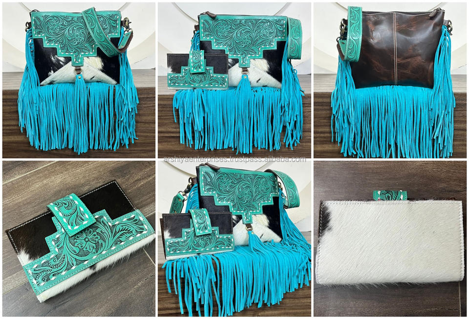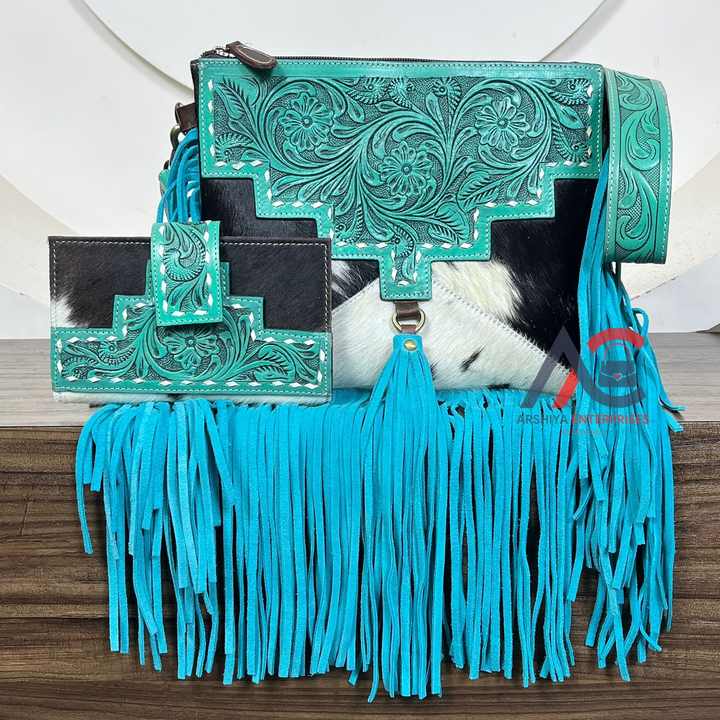 Product name:Hand Tooled Leather Fringe Bag & Cowhide Bifold Wallet