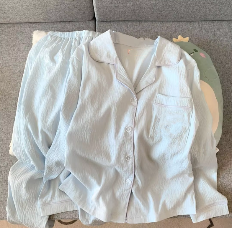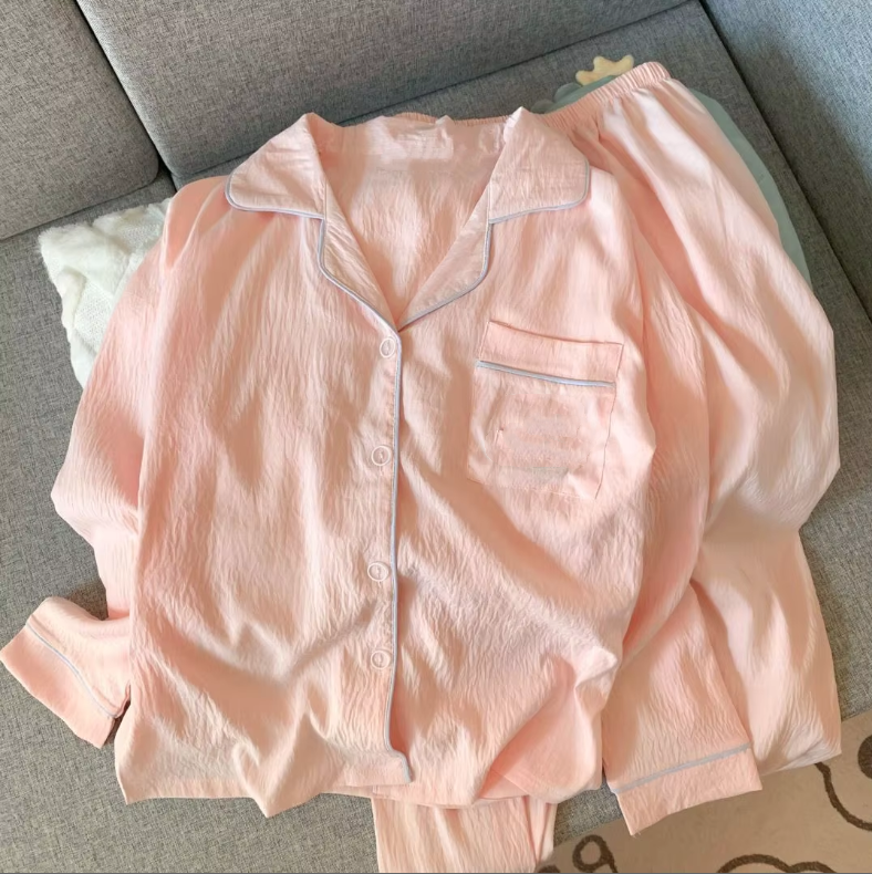 Femmes nouveau printemps automne Satin pyjamas Simple loisirs pantalons à manches longues taille élastique confortable nuage coton Homewear costume