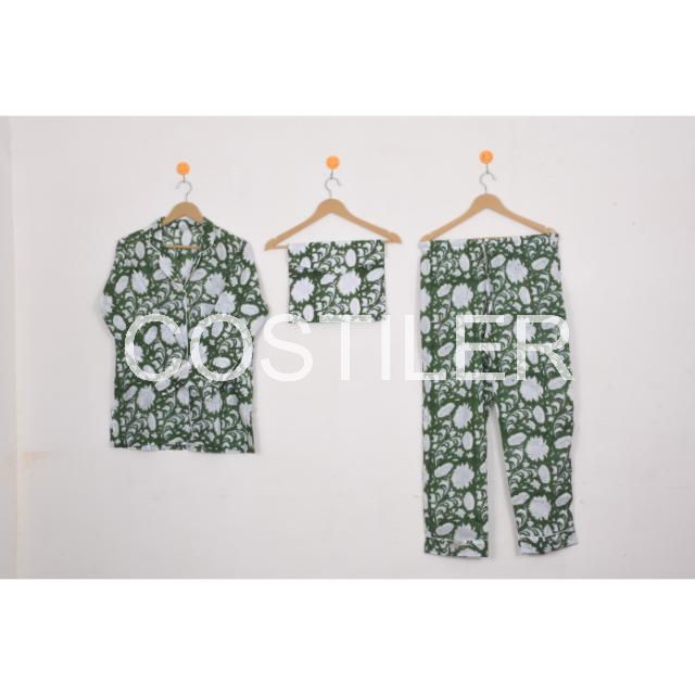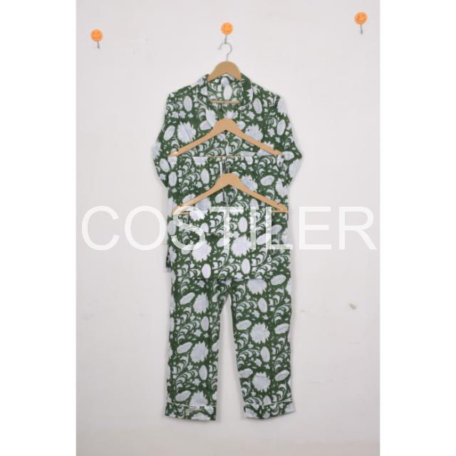 Vêtements de nuit pour femmes main bloc imprimé dames doux coton pyjama ensemble multicolore imprimé fleuri robe de nuit pour un usage quotidien vêtements de nuit